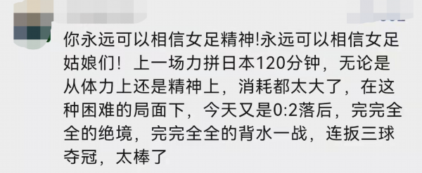 印象最深刻的女足比赛之一了”