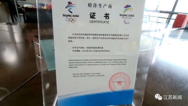 2019年企业成功入围北京2022冬奥会的特许生产商资格成为毛绒玩具类三大特许生产商之一。