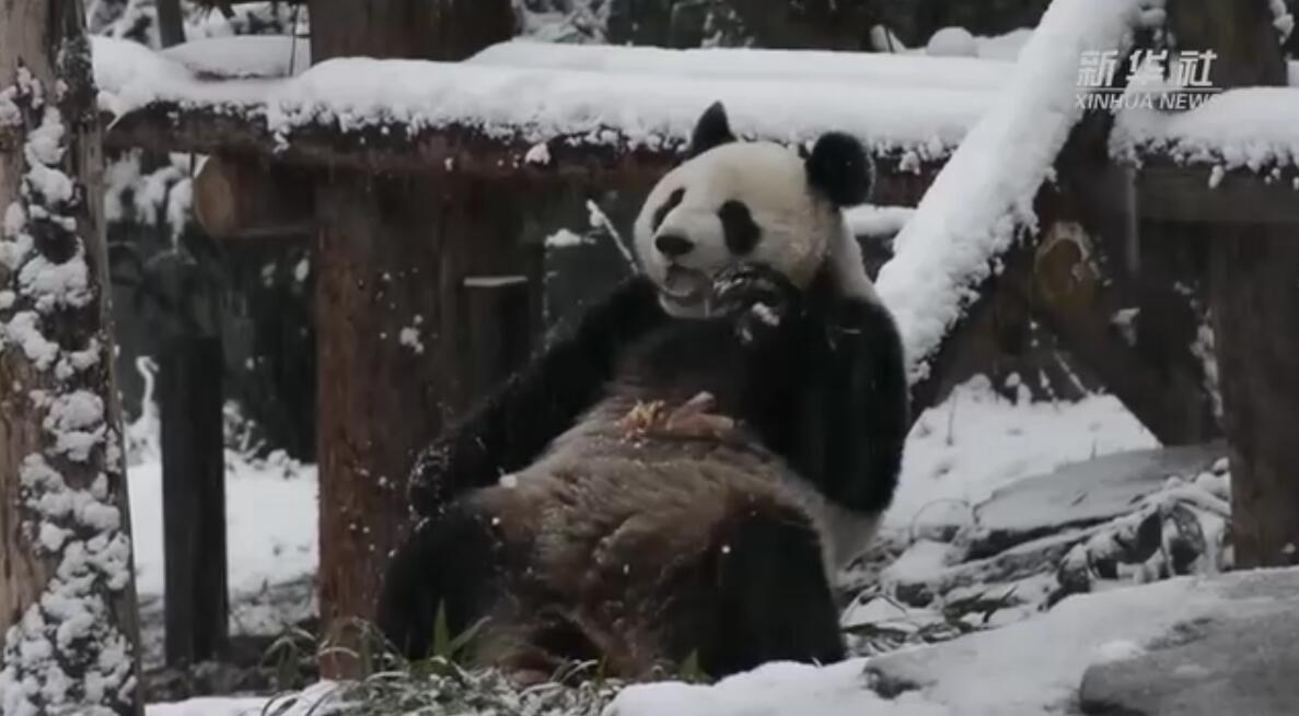 2月7日,虎年开工第一天,古都南京迎来降雪,银装素裹。在南京红山森林动物园,大熊猫雪中玩耍,悠闲自在。