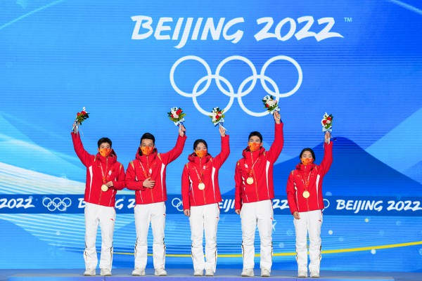 2月5日,在首都体育馆短道速滑混合团体接力的决赛上,由范可新、曲春雨、武大靖、任子威组成的中国队,以2分37秒348的成绩,率先冲过终点。这是一个历史性的时刻,中国体育代表团收获在本届冬奥会的首金,中国队的几名队员激动地哭了,表示“圆梦了!”