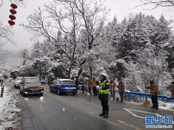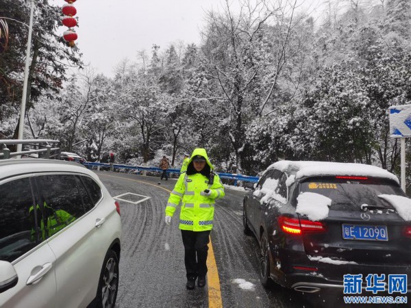 近日,江西南昌的梅岭景区出现大范围降雪天气过程,景区道路出现不同程度的结冰,给群众出行带来了一定的安全隐患。湾里交警大队迅速启动恶劣天气应急预案,全体民警、辅警停止春节休假,全员上路保畅通。该大队在景区道路上设置多个卡点,进行24小时设卡,通过“人防+物防”对上山车辆进行劝返,对留在山上的车辆通知尽快驶离,保障人民群众出行安全。(胡建强 通讯员陈默)
