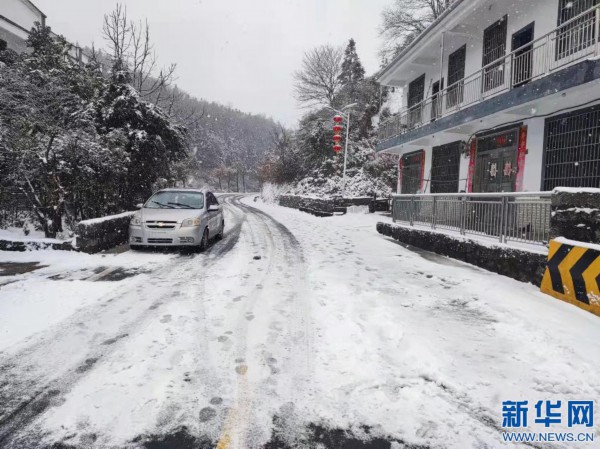 近日,江西南昌的梅岭景区出现大范围降雪天气过程,景区道路出现不同程度的结冰。新华网发