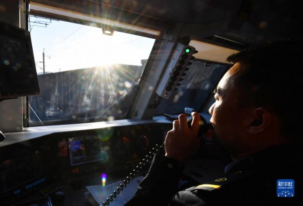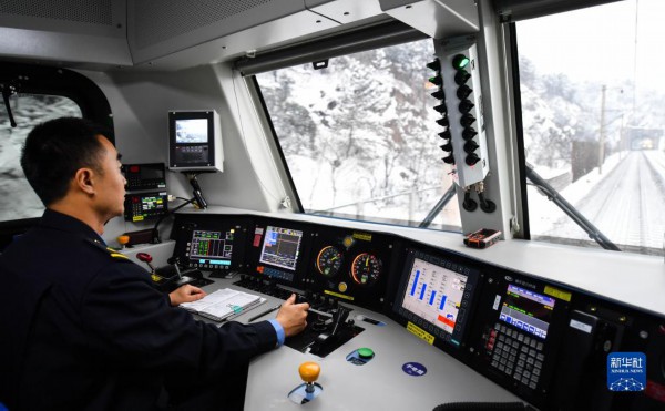 重载司机呼长宝在驾驶重载列车(1月20日摄)。新华社记者 柴婷 摄