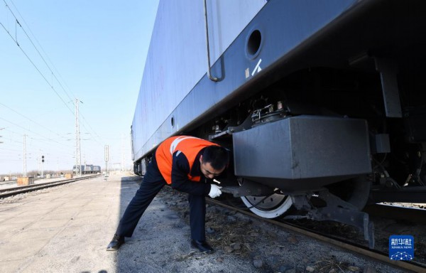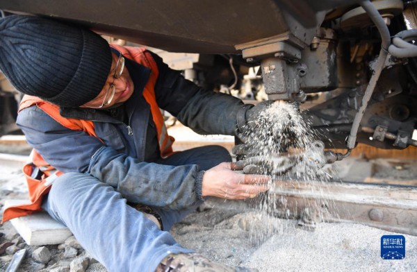重载司机呼长宝在发车前检查列车(1月20日摄)。新华社记者 柴婷 摄
