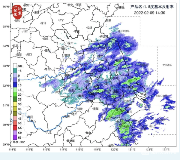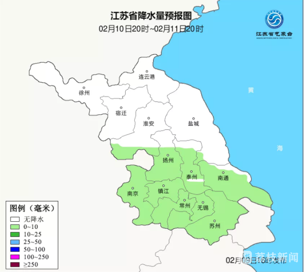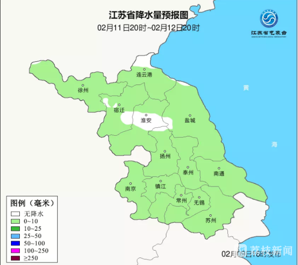 跟前三天一样,今天(2月9日)也是太阳不见踪影的一天。江淮之间南部和沿江苏南部分地区还有降水天气出现。