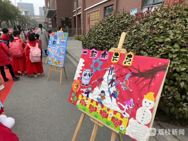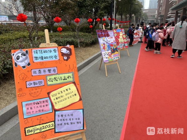 在淮安生态文旅区实验小学,老师们拿着厚厚一叠书签分发给学生们,并为他们送上新春祝福。冰墩墩、雪容融、穿着红棉袄滑雪的小老虎......一张张写满祝福的书签,让孩子们开心迎接新学期。老师们还提前做了“冬奥”展示板,报到这一天,学生们争先恐后的打卡留影,学校校长戴俊说:“希望给孩子们带来快乐、幸福的入学体验。希望孩子们在新学期中,好好学习,快乐成长,德智体美劳全面发展,学出真本领,一起向未来。”