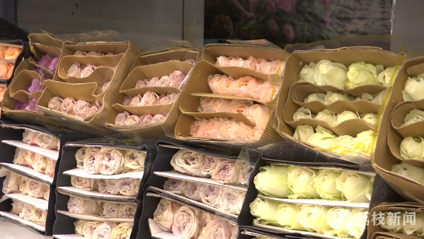 南京市汉中门鲜花批发市场花店老板吴女士说 :“像红玫瑰今年我们零售价应该在15元到25元之间,相对高端的花店来说,四五十一枝也是有的。这个价格相对往年翻了一倍多。最早大概在年初的时候,我们得知是昆明雨雪的天气,导致花农的花减产。”