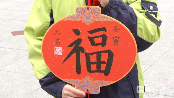 “这是我春节里写的福字,也是寒假作业的一部分,今天带过来是想给大家一个祝福。” 五年级学生祁正羽说。