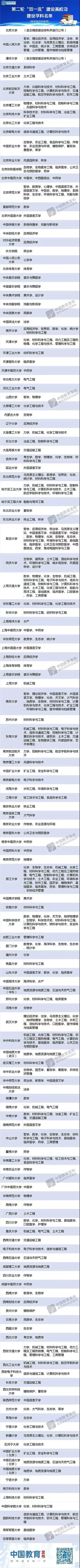 根据首轮监测数据和成效评价,三部委依据党中央、国务院确定的“十四五”期间国家战略急需领域,按照“总体稳定,优化调整”的原则,经过“双一流”建设专家委员会研究,以需求为导向、以学科为基础、以比选为手段,确定了新一轮建设高校及学科范围。公布的名单共有建设高校147所。建设学科中数学、物理、化学、生物学等基础学科布局59个、工程类学科180个、哲学社会科学学科92个。北京大学、清华大学自主建设的学科自行公布。为增强建设动力,完善约束机制,对首轮建设成效并未完全达到预期、相比同类学科在整体发展水平、可持续发展能力和成长提升程度方面相对偏后的部分学科给予警示,相关学科应加强整改,2023年接受再评价,届时未通过的,将调出建设范围。