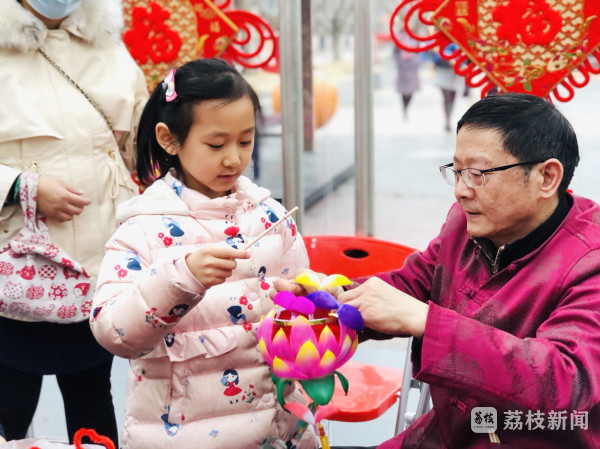 赏花灯闹元宵,自古以来是过元宵节必不可少的“仪式感”, 本次活动邀请到了秦淮灯彩非物质文化遗产传承人赵忠义老师来到现场,由他打造的“冰墩墩”造型的花灯、卡通老虎花灯,惊艳亮相。