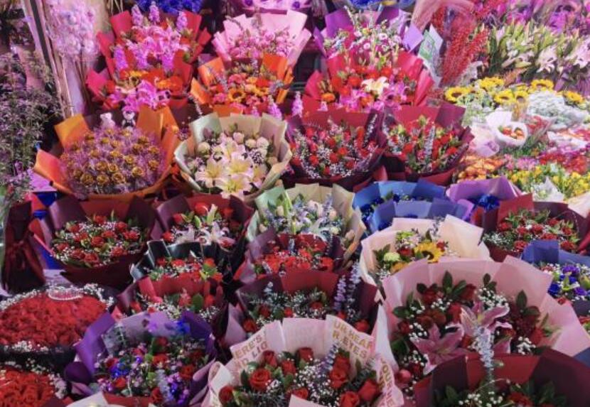 鲜花批发市场里的情人节预定花束。 中新网 左宇坤 摄