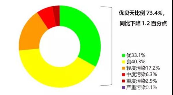 监测显示,1月,全国339个地级及以上城市平均空气质量优良天数比例为73.4%,同比下降1.2个百分点;PM2.5平均浓度为56微克/立方米,同比上升3.7%;PM10平均浓度为76微克/立方米,同比下降14.6%;O3平均浓度为82微克/立方米,同比下降3.5%;SO2平均浓度为11微克/立方米,同比下降21.4%;NO2平均浓度为31微克/立方米,同比下降13.9%;CO平均浓度为1.3毫克/立方米,同比下降13.3%。其中,长三角地区41个城市1月平均优良天数比例为64.9%,同比下降12.7个百分点;PM2.5浓度为63微克/立方米,同比上升14.5%; O3浓度为86微克/立方米,同比上升8.9%。