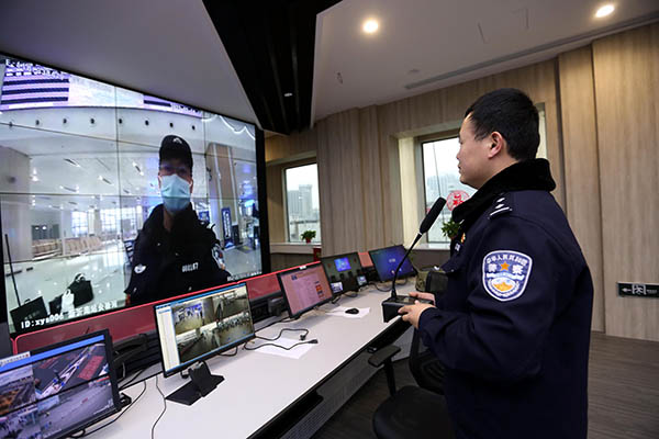 除了视频巡查外,他们还通过视频检查各个所队针对防砍杀、防冲撞、防爆炸等突发事件开展的处置演练能力。张学峰介绍说,在大屏幕上,每一个区域,每一个岗位,每一个民警,接处警的情况、状态,各岗位民警的协调配合等都看得清清楚楚,围绕实战,瞄准实战,在实训中提高守护平安的能力水平,这也是他们的一项职责。
