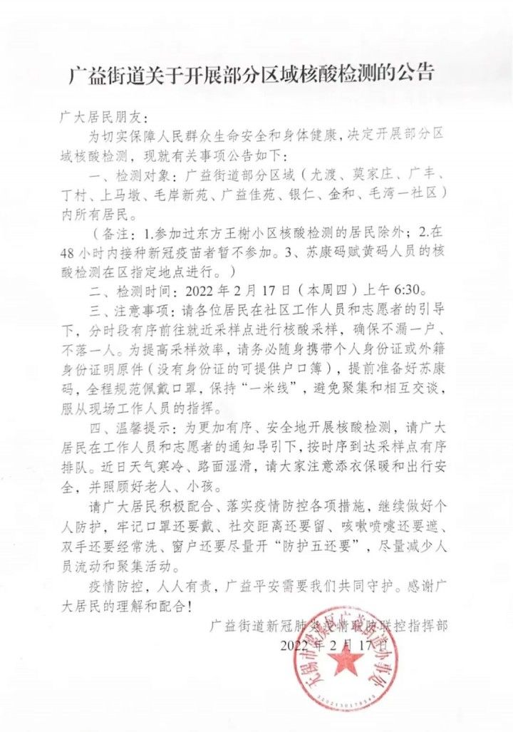 广益街道关于开展部分区域核酸检测的公告