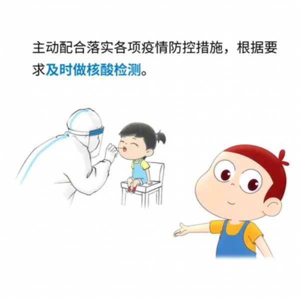 五、根据疫情防控工作需要,我市开展部分区域全员核酸检测,请广大居民在工作人员和志愿者的通知导引下,有序、安全地开展核酸检测。近日天气寒冷,可能出现雨雪天气,请大家注意添衣保暖和出行安全,并照顾好老人、小孩;