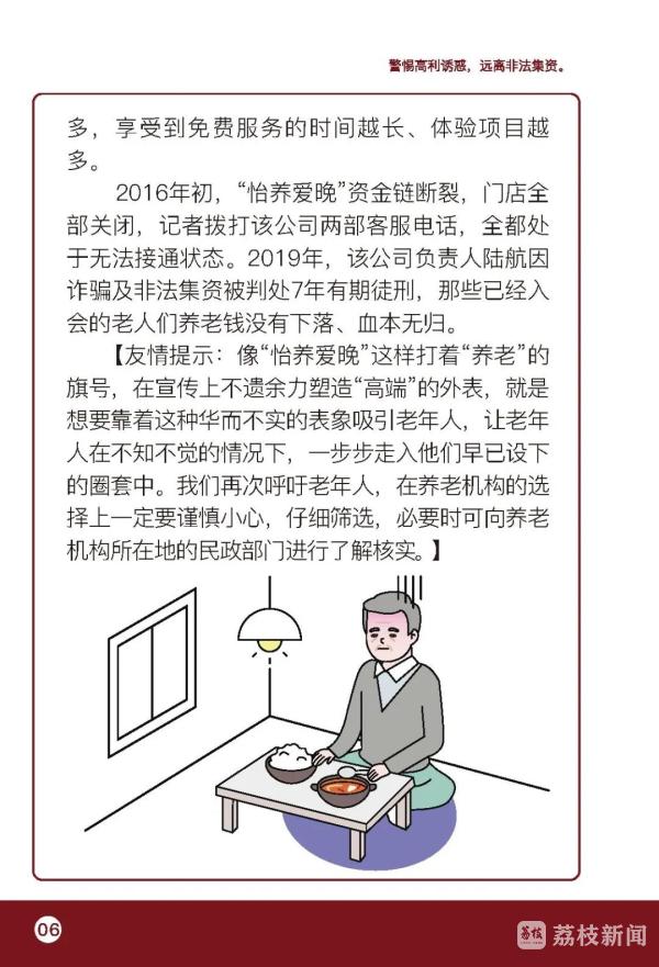 今天(2月18日),记者从江苏省民政厅获悉,日前江苏省民政厅向全省老年人发出倡议书,提醒广大老年人有效防范养老服务领域诈骗和非法集资风险,维护自身合法权益。