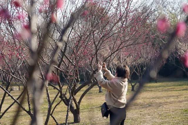 最近,扬州各大公园的梅花也相继盛开,吸引了许多市民、游客踏春赏梅。瘦西湖的“湖上梅林”已是繁花成片,"赏梅季"吸引了不少市民、游客打卡春天。在茱萸湾风景区内的梅花山上,游客沉浸在梅香花海之中,舒展身体,畅快呼吸。宋夹城公园里的梅林同样也吸引了很多摄影爱好者。市民: