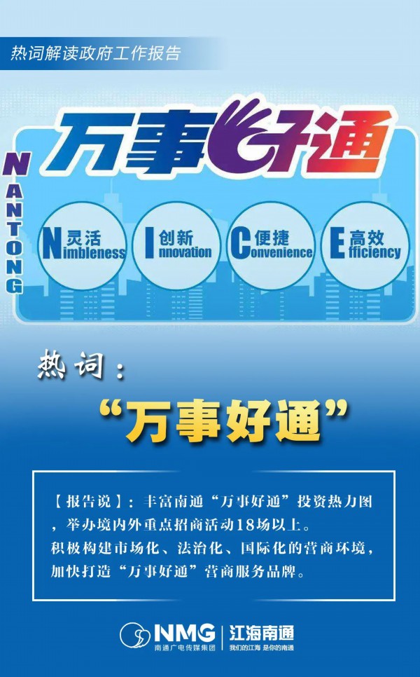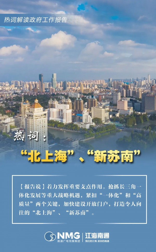 政府工作报告中还有很多“亮词热语”,事关工作全局、经济发展、民生改善等,让我们充分感受到了南通前进的强劲脉动,令人倍感温暖、充满力量!让我们一起期待这些南通发展“关键词” ,成为幸福南通的现实模样!
