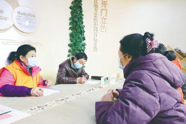 重庆市沙坪坝区人大代表在石井坡街道的社区基层立法联系点收集居民的立法建议和意见。(图片来源:人民视觉)