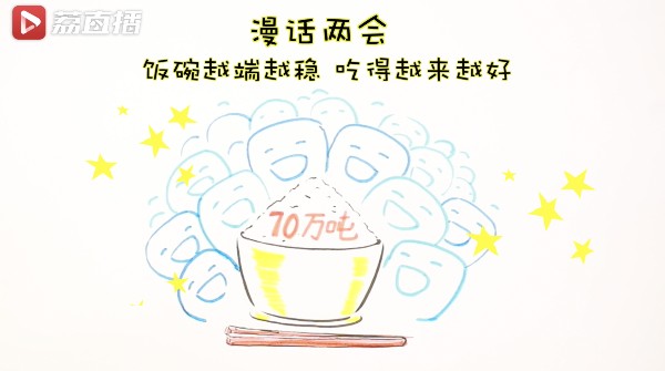 粮食安全是“国之大者”。悠悠万事,吃饭为大!目前,我国人均粮食占有量达到483公斤,比去年增加了9公斤,保障14亿人准点开饭。2022年,我国将适当提高稻谷、小麦最低收购价。守牢18亿亩的耕地红线,新建1亿亩高标准农田,让更多小农户挑起“金扁担”,让乡村振兴结出新硕果!