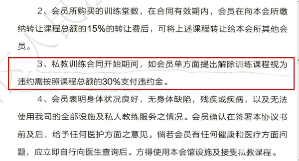 同时,双方约定了,如果张女士接受服务后单独解约,须按课程总额的30%支付违约金。该条款系双方对一方解除合同的事由,原告张女士在向被告健身房支付违约金后解除合同,但双方违约金计算标准约定过高,考虑到张女士提前解约给被告带来的损失,就是剩余未进行的私教课的预期收益,法院酌定按照张女士未上课程费用的5%计算违约金。