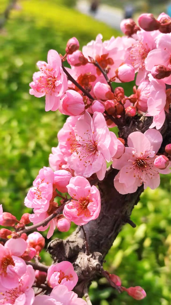 最近的气温,飙升到“2”字头,扬州也正式迎来“春暖花开”的时候,各种花儿在暖阳中恣意绽放。对于3月以来就绽放的春梅来说,大多已是落花,唯有一种春梅,刚刚绽放,它就是美人梅。美人梅,也是扬州最后一波“梅讯”。