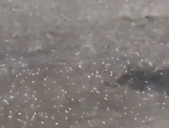 3月14日早上7点钟左右,江苏省盐城市射阳县境内乌云密布,天空一片漆黑,不时传来一阵阵雷声,随后就是大雨倾盆,大约在7点20分左右,暴雨中夹杂黄豆大小的冰雹,冰雹持续两分钟左右,地面上明显可以看到尚未融化的冰雹豆子。