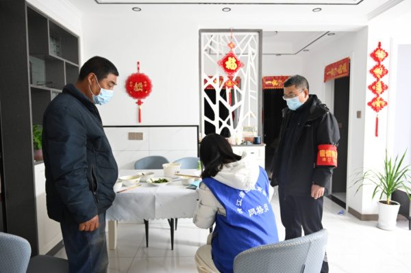 “请问您家中是否有3月1号以后来淮返淮人员?”“请问您和家人是否接种疫苗加强针?”同一时间,清江街道洪门社区也在对辖区电厂生活大院开展疫情防控“敲门行动”。2人一组,8个小组,4个小时,25栋楼,大家用点滴的努力构建起社区疫情防控屏障的“一砖一瓦”。行动中,工作人员戴着口罩、挂着袖章,耐心询问、认真记录。