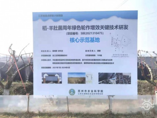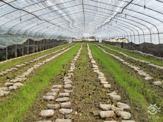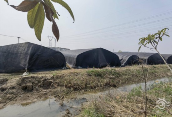 放眼望去,银杏村土地上排满了整齐的黑色羊肚菌大棚。村里目前有100亩土地正种植羊肚菌,“今年是村里大规模种植羊肚菌的第一年,这块土地前茬是生态有机稻田。去年10月底水稻收获后开始种植六妹、黑妹系列羊肚菌品种,今年4月羊肚菌全部采收完后耕地种植水稻,形成‘水稻-羊肚菌周年轮作’的绿色循环模式。”苏州市农业科学院副院长、研究员董明辉介绍,该项目获得了江苏省重点研发项目资助。