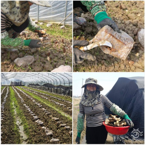 走进银杏村的羊肚菌大棚,可以看到戴着草帽的农户正在棚里采收已经成熟的羊肚菌。一朵朵鲜嫩的羊肚菌犹如一把把收拢的小伞破土而出,菌盖饱满肥厚,菌柄光滑如玉。用刀划下根部,一朵朵鲜嫩饱满的羊肚菌就被采摘下来装进盆里。