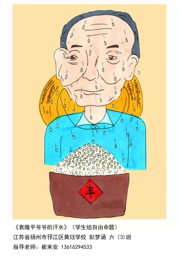 丁聪,漫画界泰斗,是中国当代漫画的标志性人物。 “丁聪杯”全国漫画大奖赛即为纪念他而设立。不久前,第三届“丁聪杯”全国漫画大奖赛落下帷幕。扬州邗江区黄珏学校女生彭梦涵的漫画作品《袁隆平爷爷的汗水》获得二等奖。