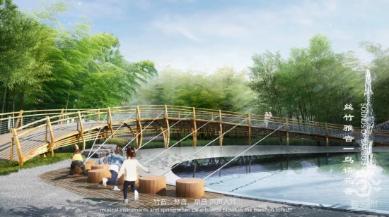 江苏省设计大师、苏州园林设计院董事长贺风春表示,“中国竹园”和以往的造园理念不同,为了让外国友人“沉浸式”了解苏州文化、中国文化,团队一改以往“传统造园”的理念,创新融入了当下流行的新媒体互动装置,“比如在‘丝竹雅音’的主题场景中,我们特意设计了象征‘六弦琴’的互动竹装置,游客可自由拨动互动按钮,触发地埋音响,制造出美妙的江南弦乐。”