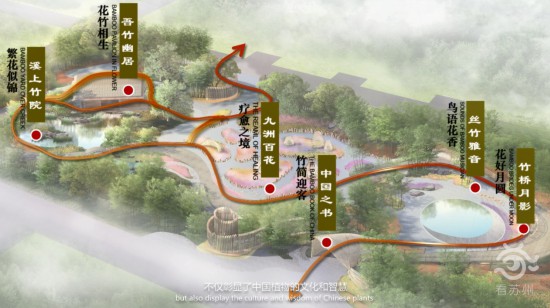 据了解,“中国竹园”在完全保留现状树木的基础上,以竹类和中国传统花卉为特色,构建竹林听涛区、特色花卉展示区和精品竹庭院区3个主题分区,融入“中国之书”“竹桥月影”“丝竹雅音”“九洲百花”“溪上竹院”“吾竹幽居”等6个主题场景。园内的233种以中国原产花卉为主的植物将根据季节的变化,呈现出不同的景观效果,向世界展示一幅“花竹相生”的立体中国画。