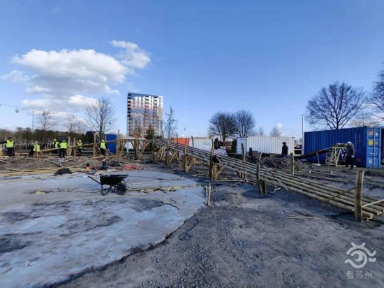 3月16日下午,记者连线远在荷兰的苏州农业职业技术学院园林工程学院副院长鞠鹏杰,揭秘百日造园的背后故事。 “距离‘中国竹园’亮相荷兰阿尔梅勒世界园艺博览会,还有不到一个月,我们每天都在与时间赛跑。目前,项目正在稳步推进,已完成25%的工程量。”