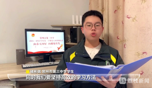 “疫情当下,我们代表学生会发出以下倡议:停课不停学,我们要营造良好的学习环境和氛围,积极参与线上学习交流。同时我们要坚持高效的学习方法,做好课堂笔记,及时完成作业并查漏补缺。”常州市第三中学学生褚彬祺说。