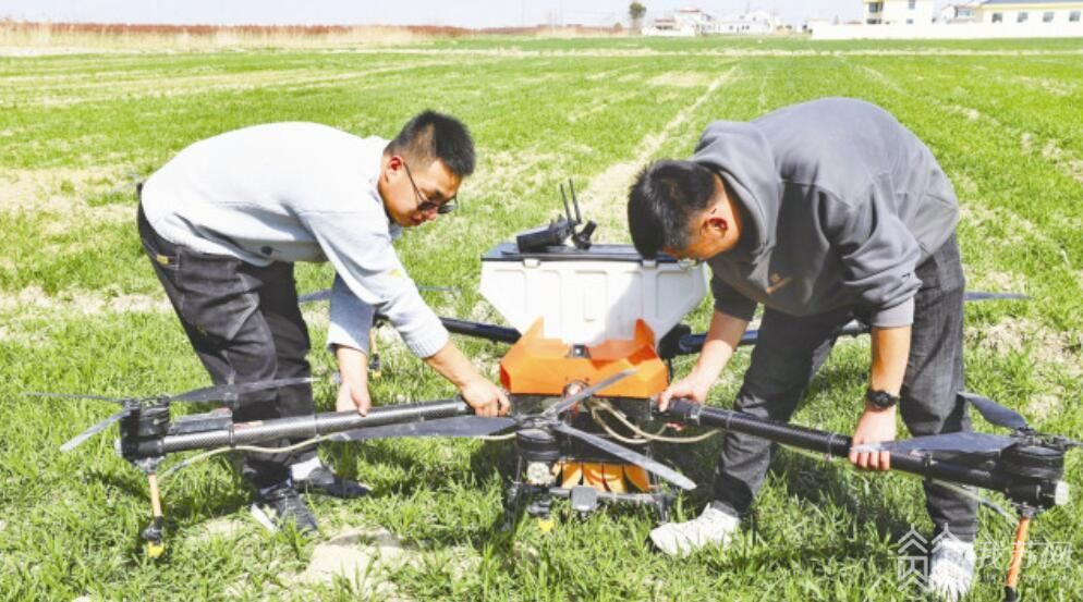 而在宜兴市杨巷镇,智能化的无人机取代了传统的农机器械。徐正春今年种植1500亩小麦,广袤田野的上空,一架架无人机来回逡巡,正在喷洒肥料。