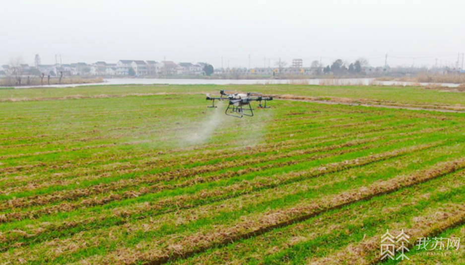 在苏州相城北桥街道石桥村,农户们正用遥控器操控农用无人机,给麦地施肥。无人机在麦田上空折返往来,短短1小时时间,就完成了30余亩地的作业。