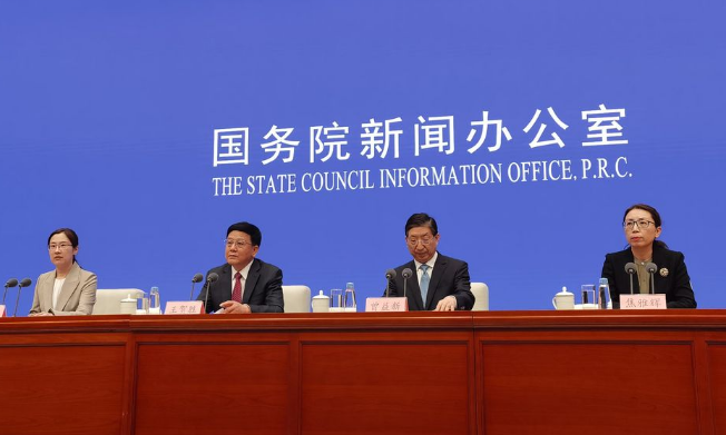 国务院新闻办18日举行的新闻发布会现场。(新华社记者宋晨 摄)