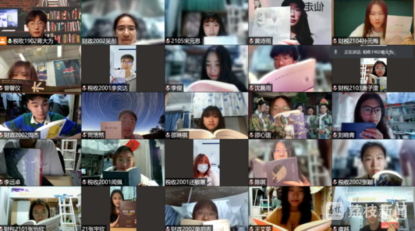 为倡导同学们以阅读代替户外娱乐,激发同学们的学习能力,南京财经大学财政与税务学院学生们自发组织的“悦读一小时”共读打卡分享会每晚九点准时营业,通过组建 “与春书”云阅览室、云打卡、云分享等方式,调动学生的学习热情,与书籍共度温暖时光。