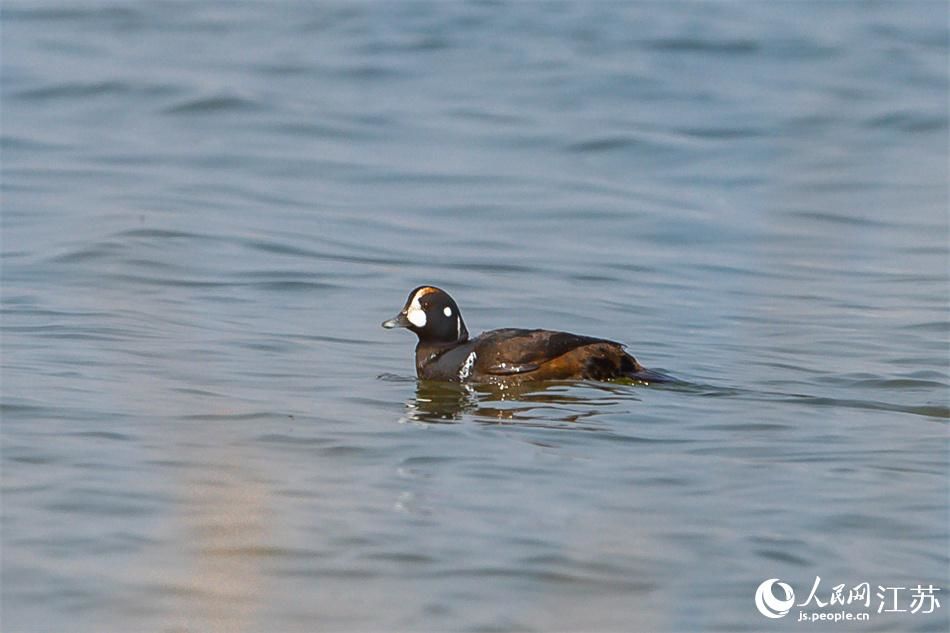 毛色暗棕,耳羽和眼周均有白斑,江苏盐城的摄影爱好者日前在黄海湿地大丰滩涂捕捉到了一只罕见鸟类的镜头。经南京林业大学教授鲁长虎确认,这是少见的丑鸭。