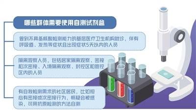“抗原检测应该用在高风险、高流行率聚集性感染人群的检测,一般人群没必要做抗原检测。”李金明谈到需要使用自测试剂盒的群体时说,首先是到不具备核酸检测能力的基层医疗卫生机构就诊,伴有呼吸道、发热等症状且出现症状5天以内的人员。其次,隔离观察人员,包括居家隔离观察、密接和次密接、入境隔离观察、封控区和管控区内的人员。最后,有自我检测需求的社区居民,比如有的居民觉得自己不小心接触到可能带有新冠病毒的物品,担心会被感染,可用抗原检测的方法自测。“抗原检测的频率一天一次就好,不需要太频繁。”
