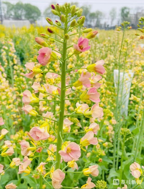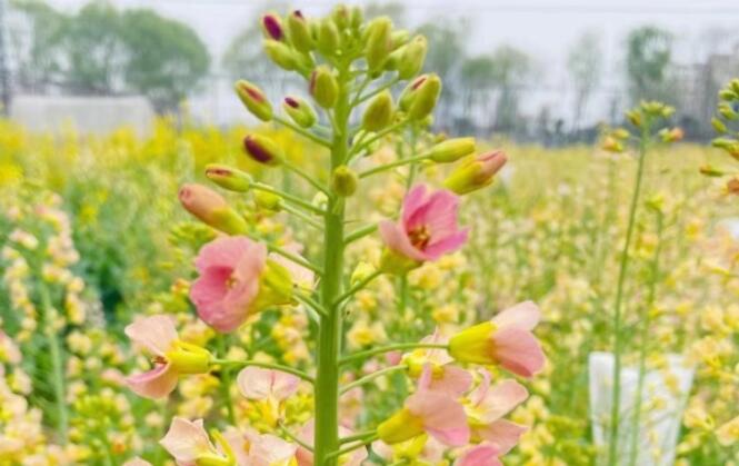 “油菜花还可以五颜六色?”看到记者啧啧称奇,正在田里选种杂交的里下河农科所经济作物研究室科研人员张瑛使劲跺了跺脚上的泥巴,带记者来围观他们的“成果”。“正常油菜花只有黄色和白色,而萝卜同属十字花科作物花色更加丰富,将两者远缘杂交,可以培育出多彩的油菜花,观赏价值更高。”