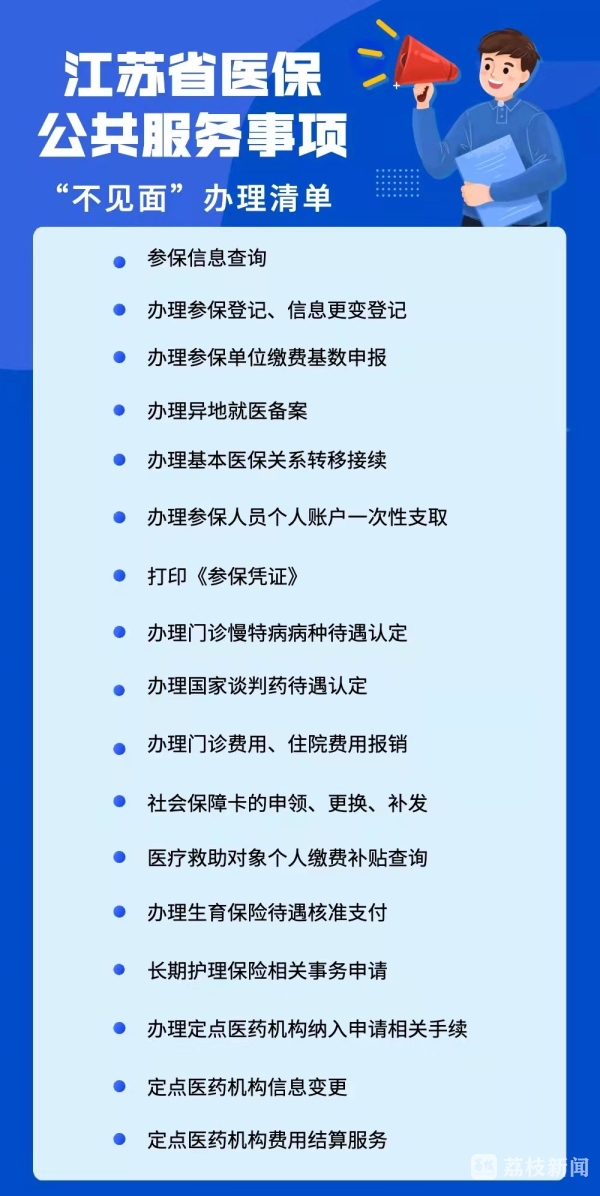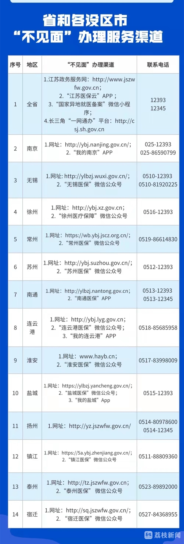一是推进医保公共服务事项“不见面”办理全覆盖。在“江苏医保云”、长三角“一网通办”平台、国家异地就医系统实现高频服务事项“跨省通办” “省内通办”的基础上,要求各地医保部门通过本地公共服务平台、微信公众号等,推动服务关口前移,实现医保公共服务事项“网上办、掌上办”100%全覆盖,并全力保障线上“不见面”办理服务渠道畅通、安全、高效,及时做好网上办理各流程环节的衔接工作,确保在承诺期限内办结服务事项。