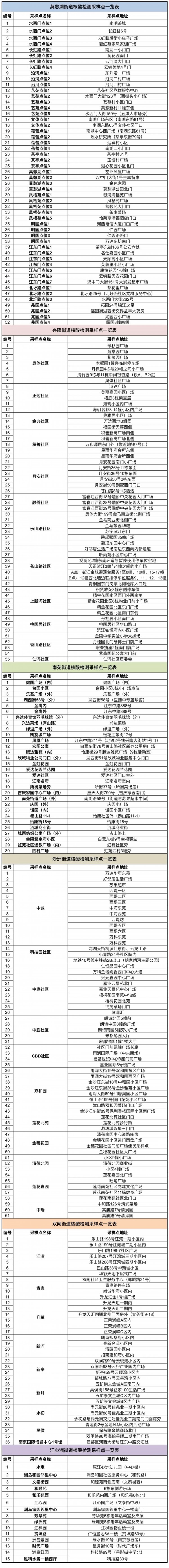 附:建邺区第二轮规模性核酸检测采样点一览表