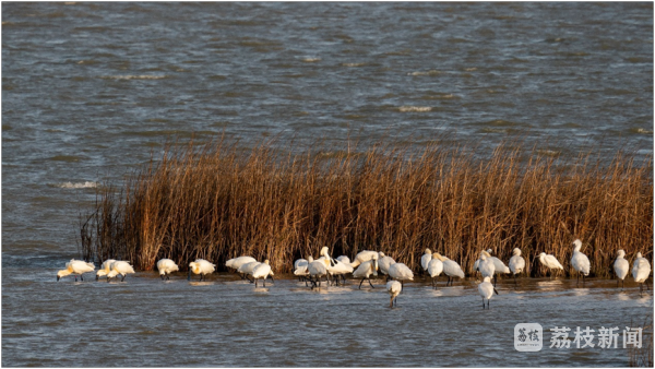 25只“黑面天使”组团飞临 南通沿海再迎全球濒危珍稀鸟类黑脸琵鹭
