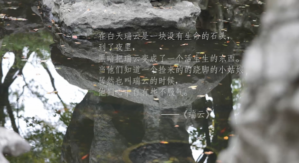 小说《瑞云》中的女主人公瑞云其实和太湖石并无直接关系,她是一个娴静的江南女子,一个与世无争的裁缝。但历史的,自然的,静止的古迹,活生生的人,人的命运,冥冥之中交错激发,造成一种从未有过的空间和氛围,形之文字,名曰虚构。所谓“小说”,一言以蔽之,虚虚实实。