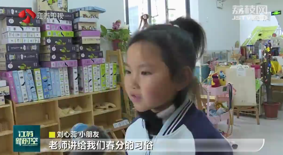 刘心蕊小朋友说:“老师讲给我们春分的习俗,我们今天画鸡蛋、竖鸡蛋,还有放风筝。”
