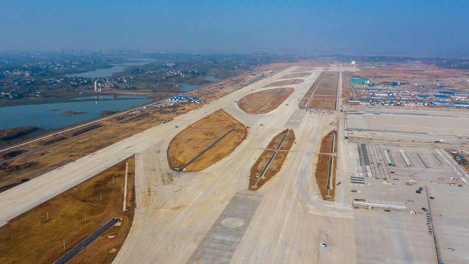 The construction site of Huahu Airport, Ezhou City, Hubei Province, central China, November 28, 2021. /CFP