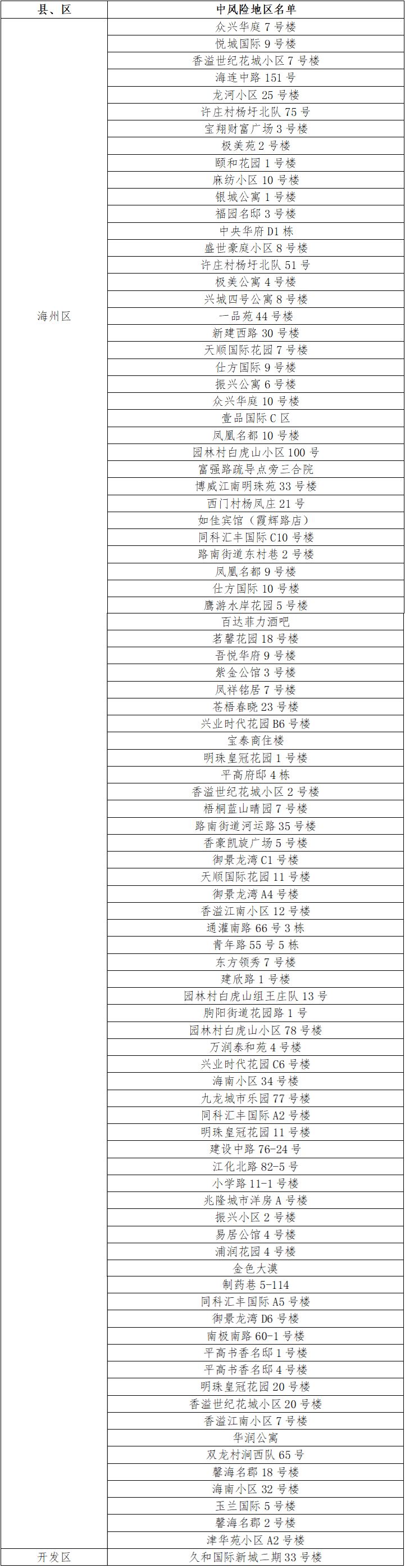 根据国务院联防联控机制有关规定,经市指挥部研究决定,自发布之日起,对我市部分区域疫情风险等级进行调整: