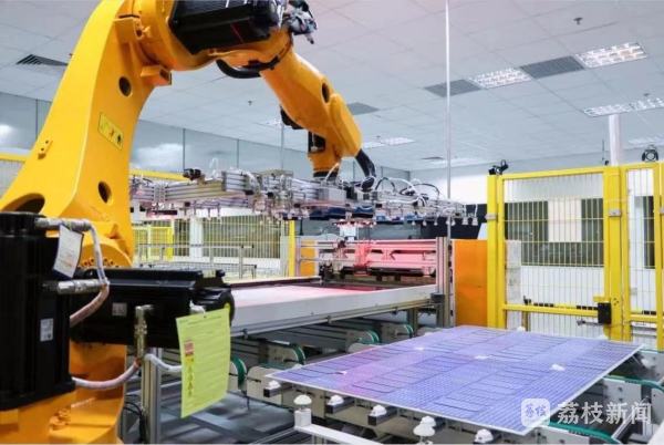 在扬州,晶华新能源有限公司的智能化产线上,几十个机器人正在工艺流程上进行生产,公司新的光伏组件生产项目将新增建筑面积29万平方米,项目建成后形成年产太阳能光伏组件8.5GW的生产能力。公司制造运营副总陆麒介绍,公司去年完成了10亿元的产值目标,今年的目标是50亿元,预计未来两年,20条线全部扩产完成后,企业产值将突破180亿元。